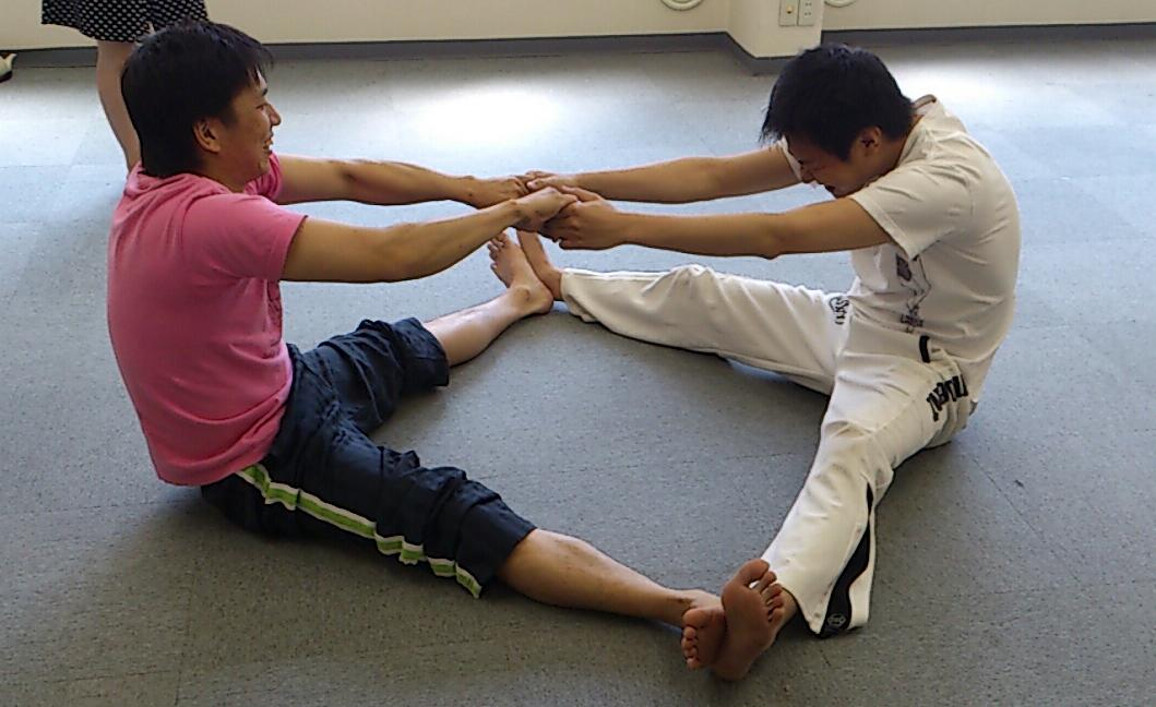 柔軟大会になった稽古場。